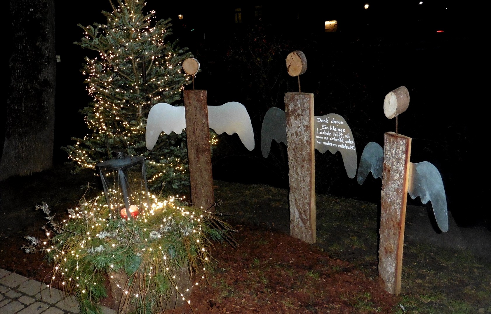 Unter Führung von Frau Würzburger liefen wir verschiedene Stationen auf dem Engelweg, wobei wir einen Zwischenstopp mit Glühwein und Gebäck gerne angenommen haben.